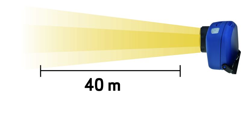 Stepless adjustable focus lighting up to 40 m Turn focus lens from wide angle for close range work light to narrow angle for long-distance light, depending on your work task. Stepless adjustable lighting beam angle ranges between 45° and 25°.