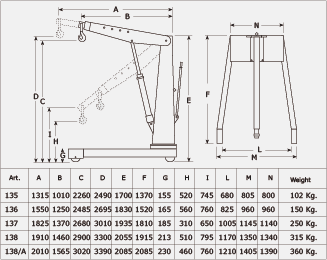 TROLLEY HYDRAULIC CRANES "SERIES SUPER L" - Art. 135, 136, 137, 138, 138/A